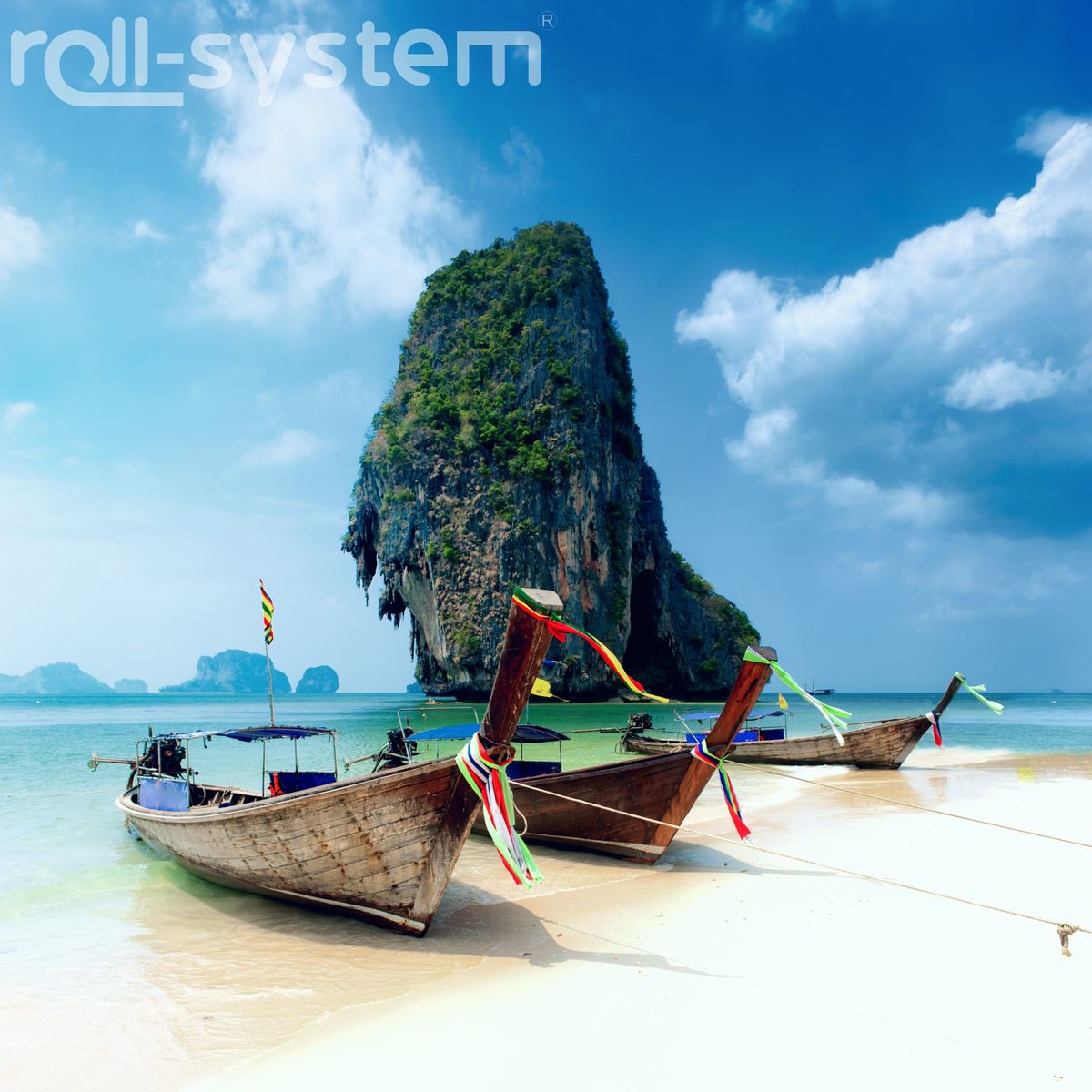 El logo "roll-system" que aparece en estas imágenes NO será imprimido en la lámina de la puerta de su mampara.